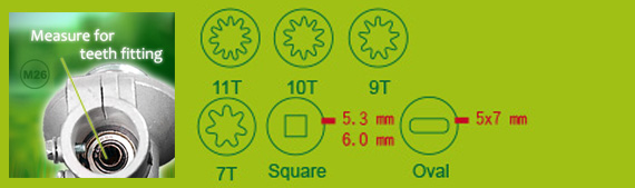 26MM or 28MM x 7 teeth INTER GROOVES |
