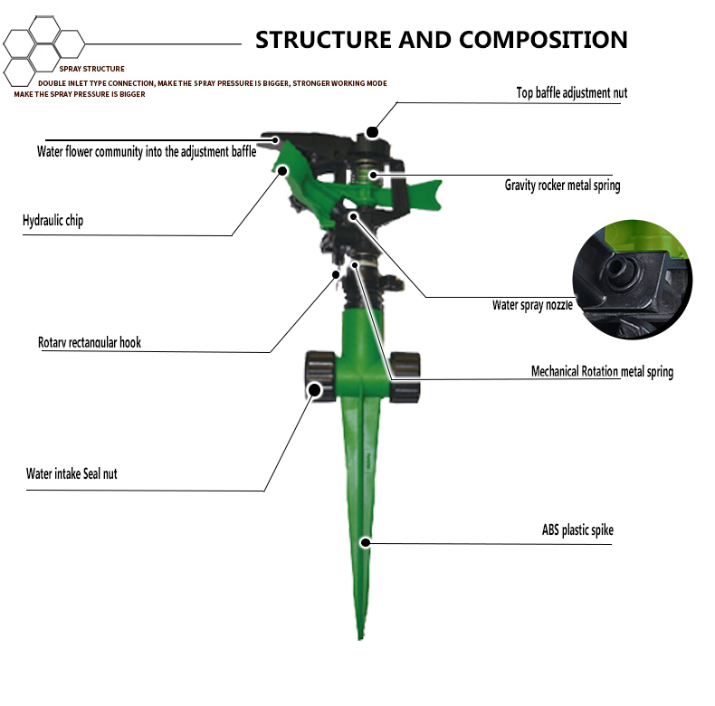 1.The biggest difference between this product and the general sprinkler is that it has a baffle that can rotate around in a certain angle